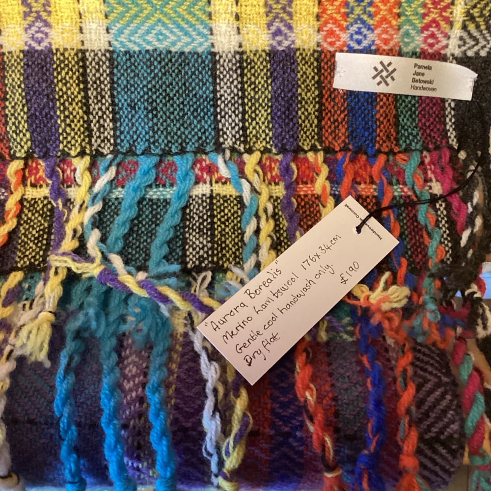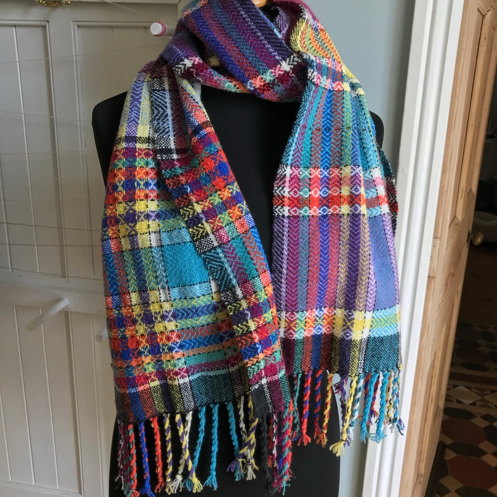 “Aurora Borealis” is a handwoven twill scarf woven in luxurious soft Merino Lambswool. Designed and woven by me in a rosepath twill pattern on my 8 shaft floor loom. Each of my scarves are unique one off pieces.
