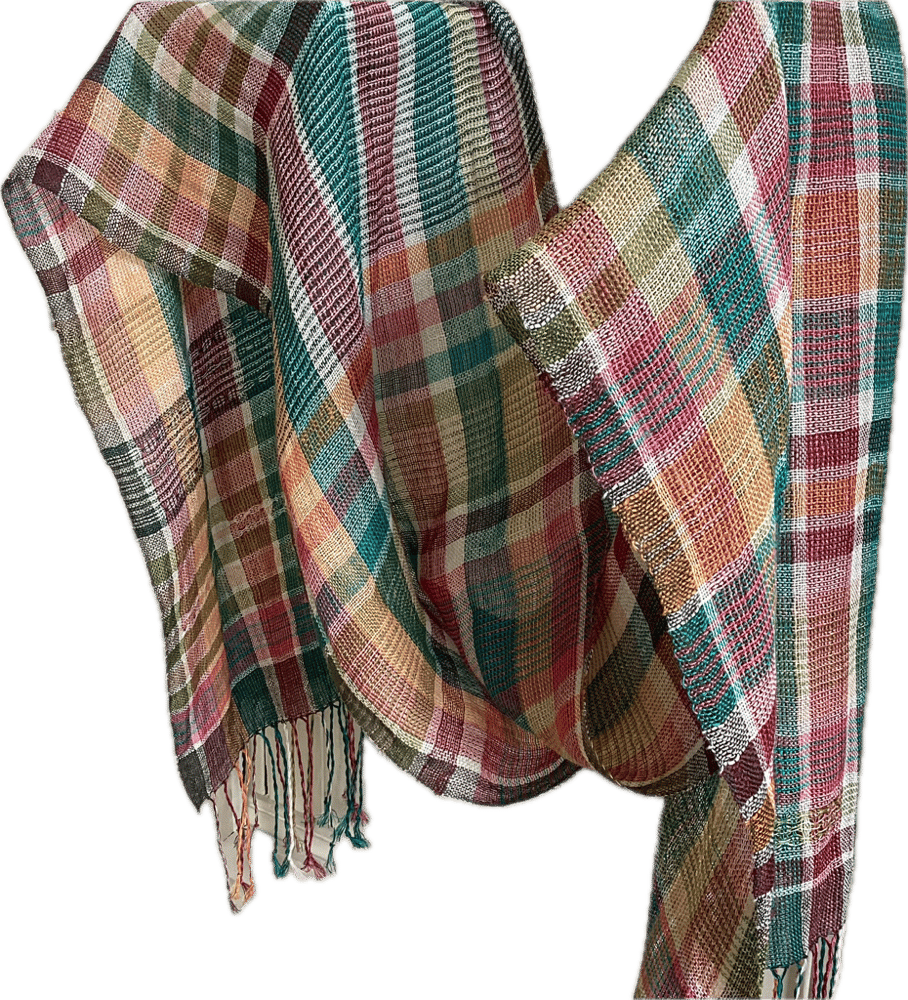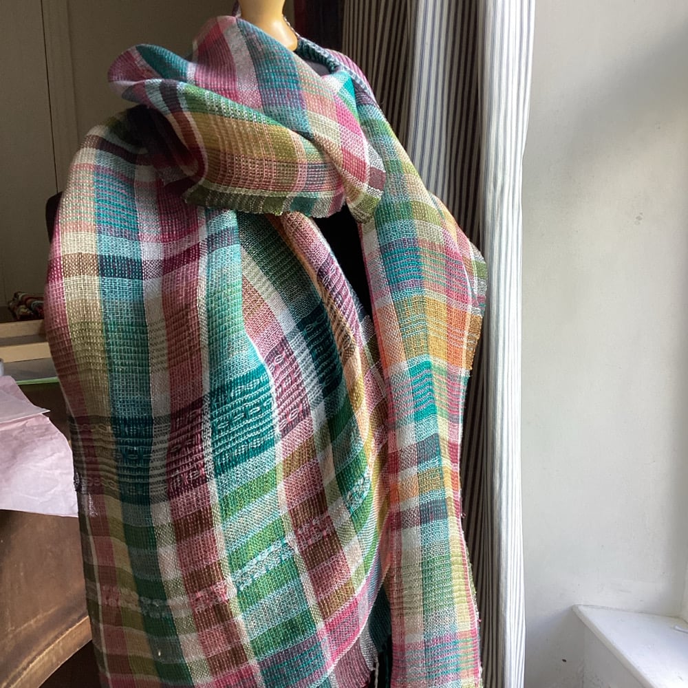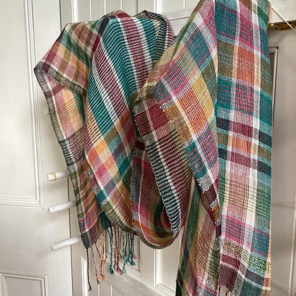 “Bartinney” is a long summer scarf woven in 100% linen. It has been designed by me and handwoven in plain weave with a huck lace weave detail. This lightweight, delicate scarf is an individual one-off unique piece. This piece draws inspiration from the Bartinney nature reserve close to where I live where gorse and heather bloom.