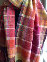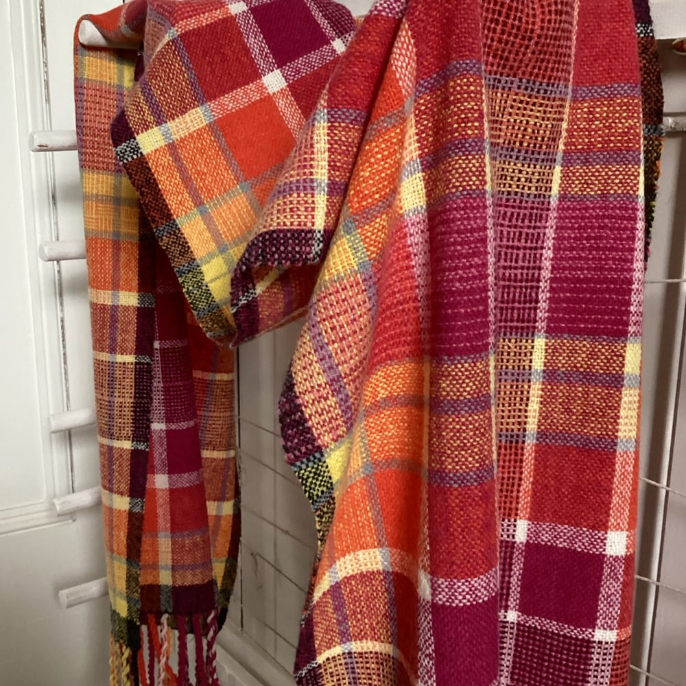 This scarf is designed and handwoven by me on my little floor loom from luxuriously soft lambswool yarn. Woven in plain weave structure with little areas of log cabin. Each of my scarves are individual creations. Carn Euny is named for the nearby ancient village.