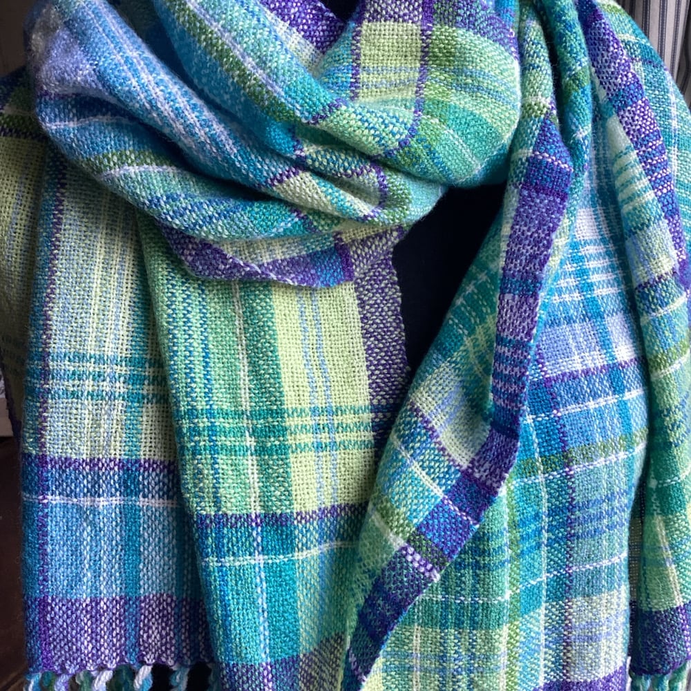 ‘Lands End’ is a warm winter scarf, wrap, shawl or stole which has been designed and handwoven by me on my 8 shaft loom in my studio in the far west of Cornwall. Hand-woven in plain weave in from beautifully soft merino lambswool in colours of the coastal landscape, sea and sky.